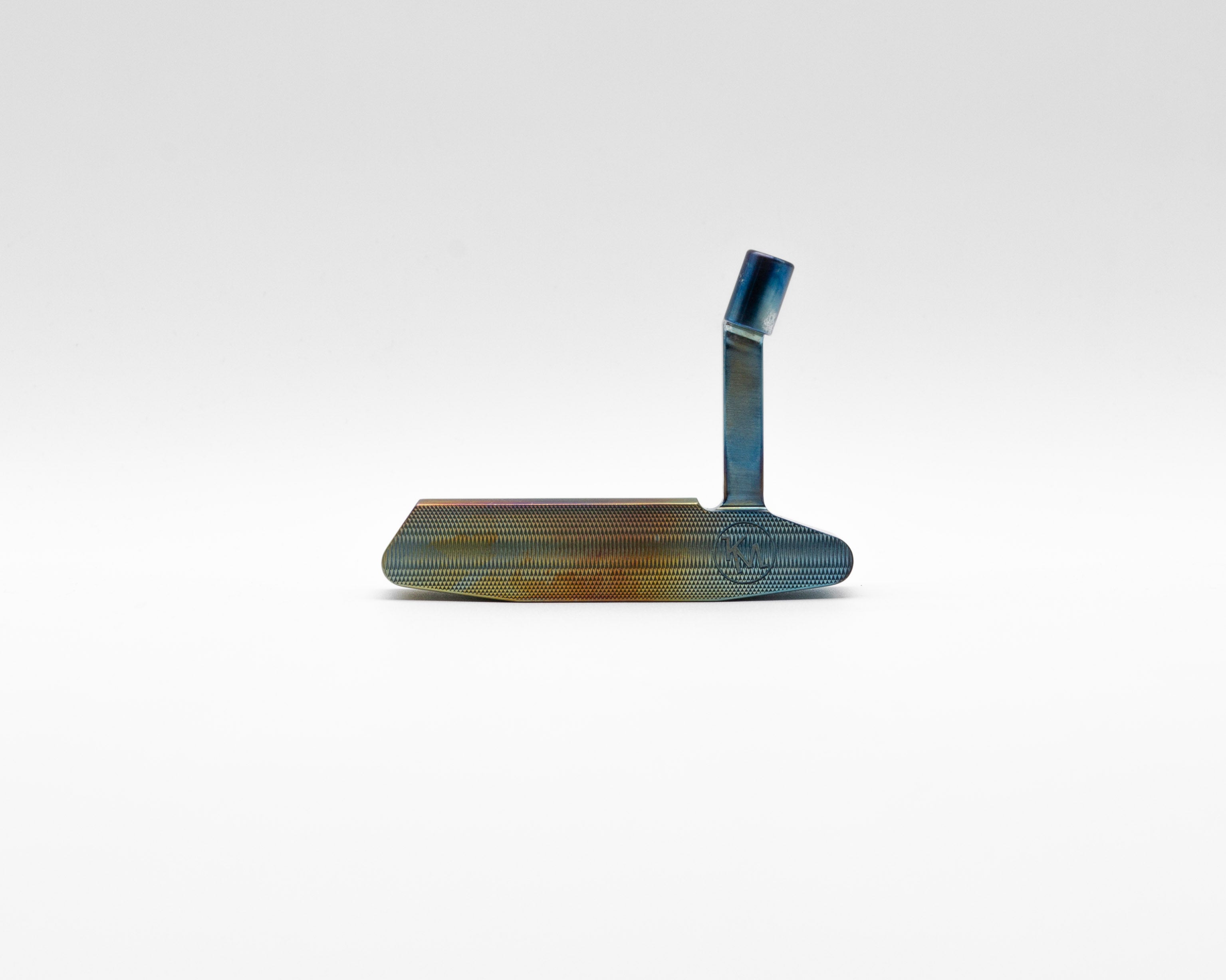 Elevate your putter with our torching process, a technique that creates stunning, iridescent finishes in shades of gold, bronze, blue, purple, yellow, and green. This process not only enhances the aesthetic appeal of your putter but also ensures that each piece is completely unique—no two torching patterns will ever be identical. Our torching process guarantees a head-turning look that stands out on the greens.